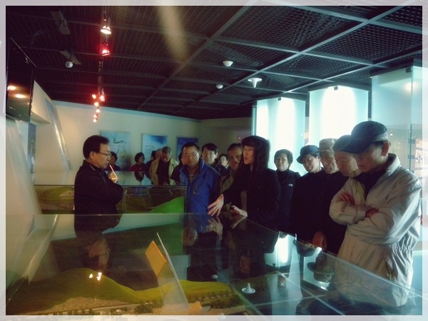 : 충주댐 물 문화관에서 담당자분의 설명을 듣고 있는 모습입니다.