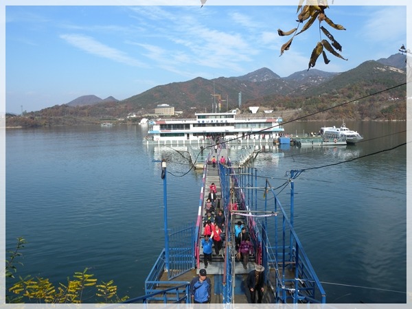 : 선착장에서 유람선을 타고 청풍문화재단지까지 갑니다.